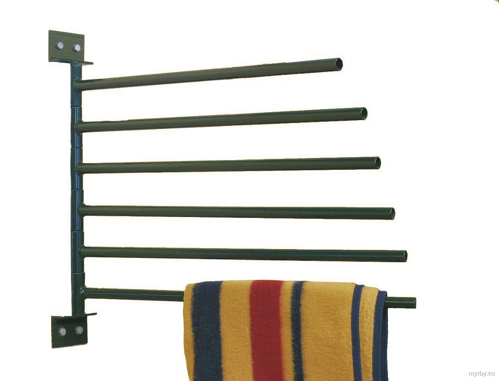 Kraftig dekkenhenger i sortlakkert stål. Dekkenhengeren er svingbar, og tar litt mindre plass da dekkenene henger over hverandre på kraftige stålrør. Fås også i varmgalvanisert stål.