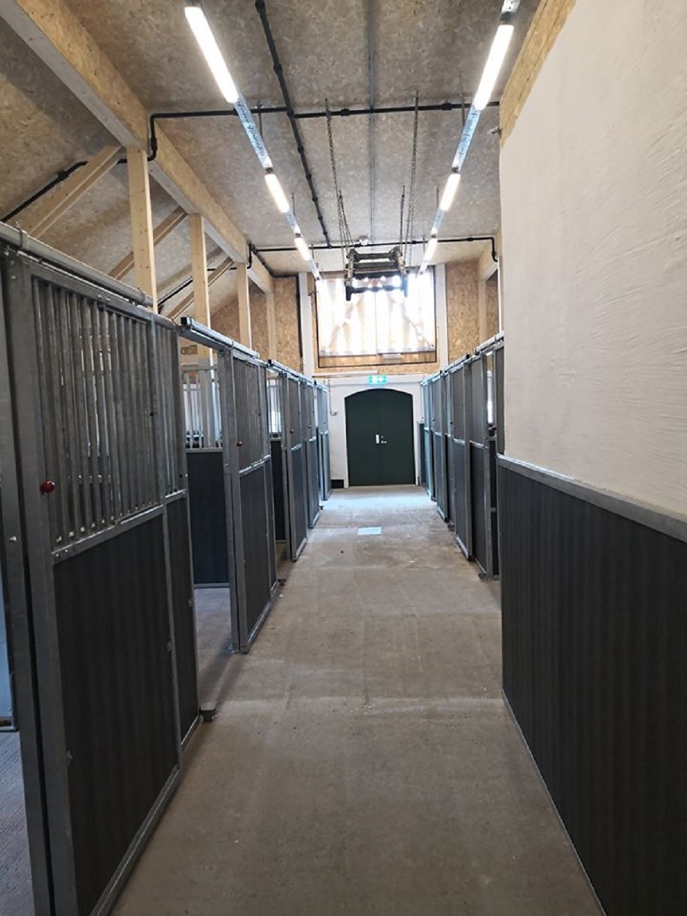 Oslo Kommune valgte stallinnredningen Optimal med plastplanker når Bakkeløkka skulle pusses opp. I tillegg har vi levert stalldører, som etterpå har blitt malt grønne og gitter for å beskytte de gamle vinduene.
